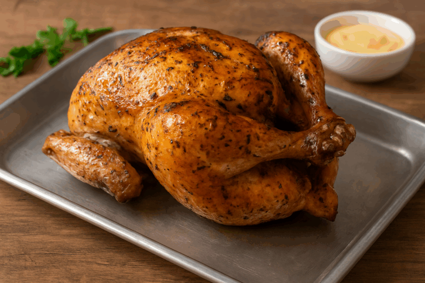 Asse por aproximadamente 1 hora ou até que a pele esteja dourada e a carne esteja cozida.