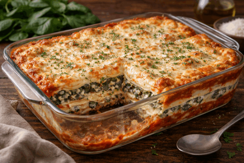 Leve ao forno preaquecido a 180°C por aproximadamente 40 minutos, ou até a lasanha ficar dourada e borbulhante.