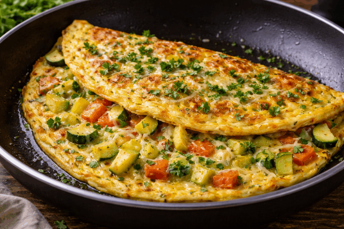 Se desejar, adicione queijo ralado por cima da omelete. E lembre, queijo é muito bom e nunca é demais.