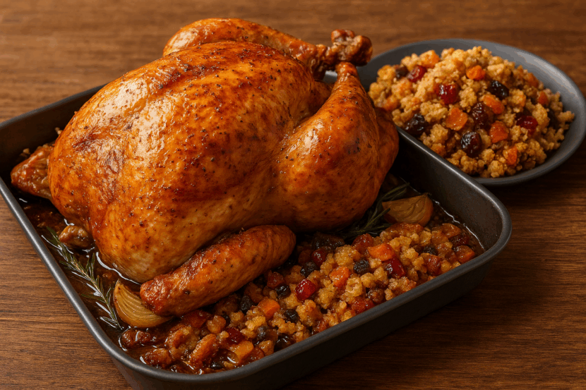 Unte o peru com manteiga e leve ao forno preaquecido a 180°C por cerca de 3 horas, regando com o molho durante o cozimento.