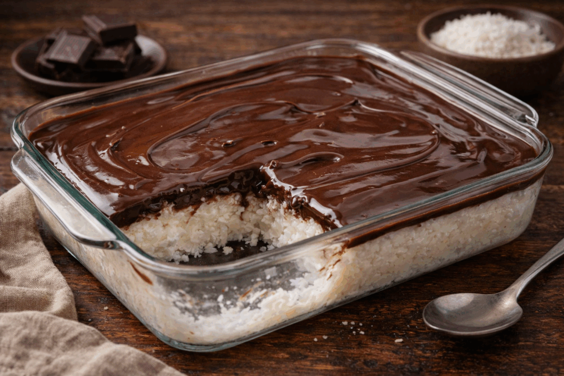 Misture muito bem esse ganache e, após misturar, derrame por cima do coco com leite condensado formando uma cobertura.