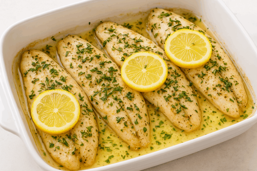 Lave e seque os filés de tilápia e coloque-os na assadeira