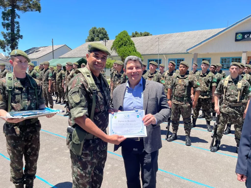 Durante a solenidade, três militares receberam o diploma de Benemérito: coronel Roberto Domingos Zanette, coronel Lúcio Mauro Villote Moreira Guerra e subtenente Darian Moreira Weber.