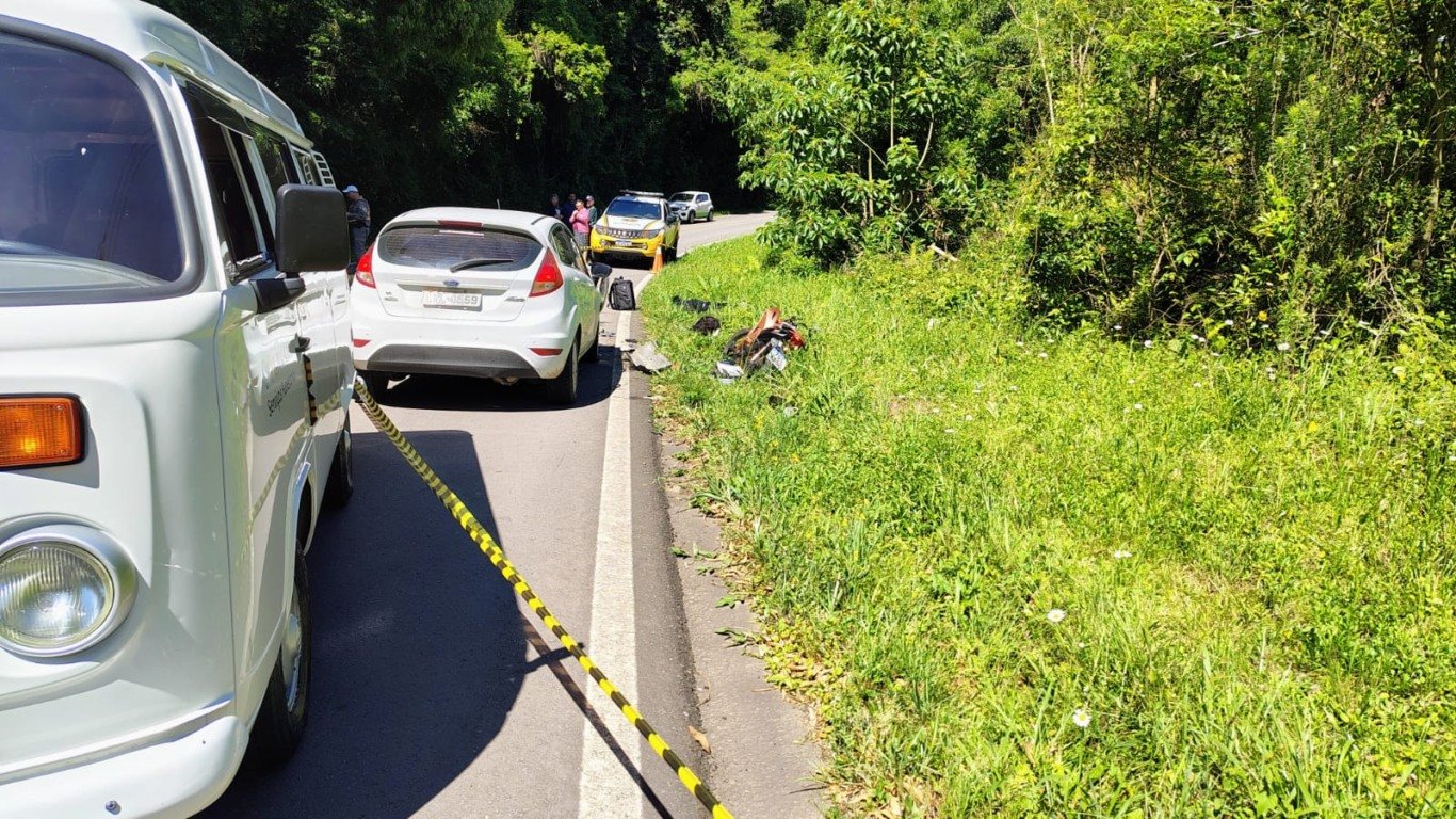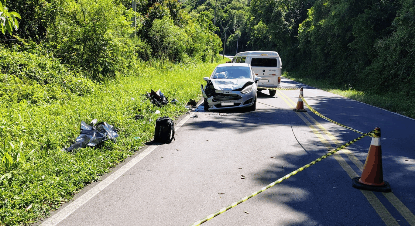 Bento Gonçalves e Pinto Bandeira - Uma colisão frontal entre um carro e uma motocicleta na manhã desta terça-feira (11) resultou em um grave acidente com uma vítima fatal e outra com lesões graves. O fato ocorreu no Km 16 da VRS-855, rodovia que liga Bento Gonçalves a Pinto Bandeira.