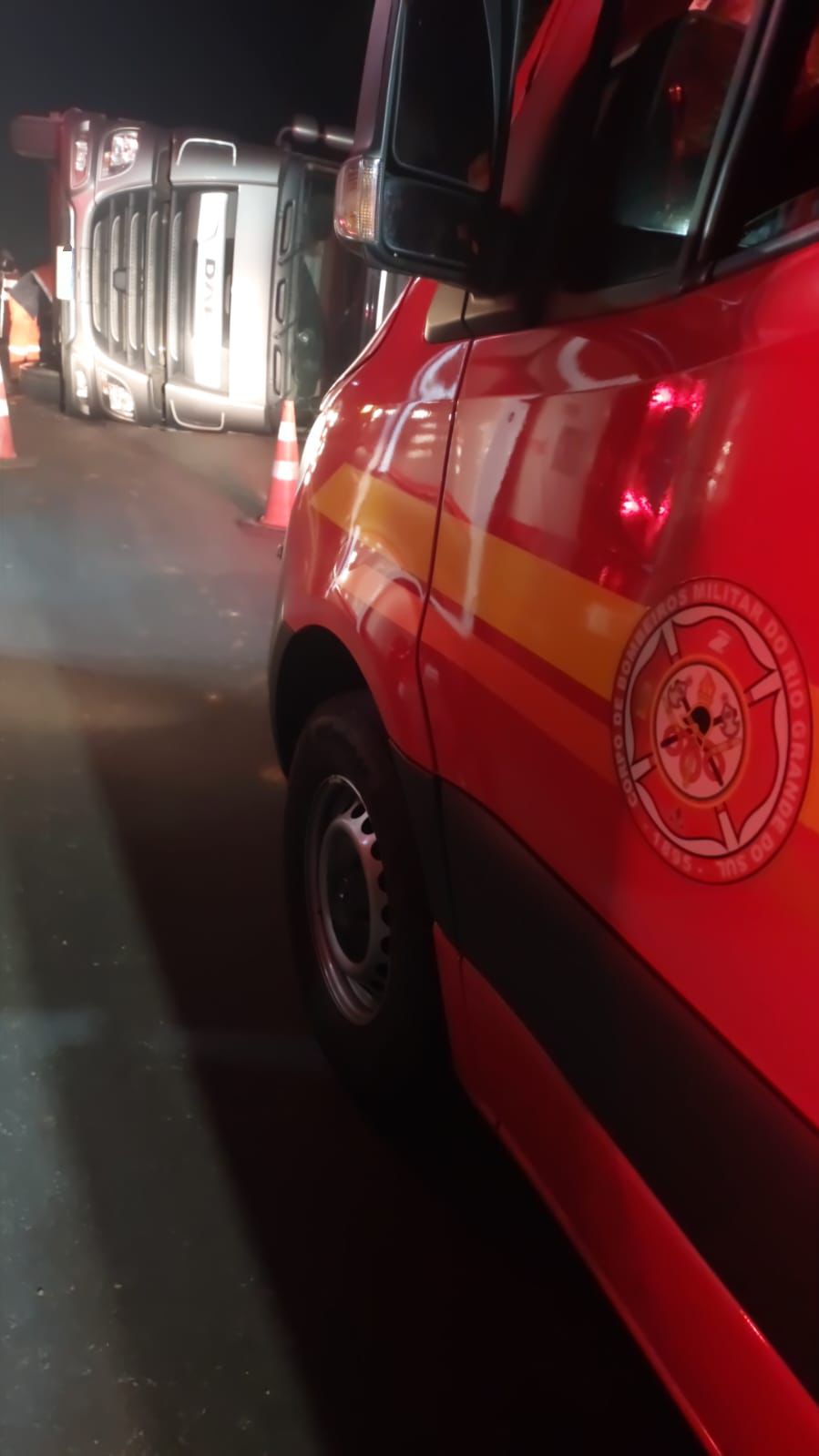 Houve ainda vazamento de combustível do caminhão, mas a situação foi controlada e devidamente sinalizada. O Corpo de Bombeiros Militar, por meio da 3ª Companhia de Bento Gonçalves, atuou na ocorrência, juntamente com o Samu e a PRF.