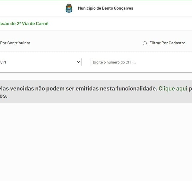 As guias estarão disponíveis em janeiro de 2026 no site bentogoncalves.oxy.elotech.com.br/portal-contribuinte/consulta-carne, com consulta por CPF, CNPJ ou código do imóvel.