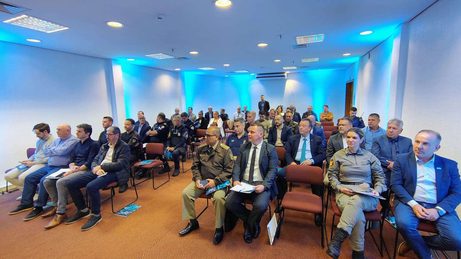 O Seminário de Tecnologia e Inovação na Segurança Pública reuniu, na manhã desta quinta-feira (11), cerca de 50 representantes de órgãos de segurança no Hotel Dall’Onder, em Bento Gonçalves. Participaram secretários municipais, comandantes de guardas municipais, integrantes de batalhões regionais da Brigada Militar, policiais da PRF e demais profissionais do setor.