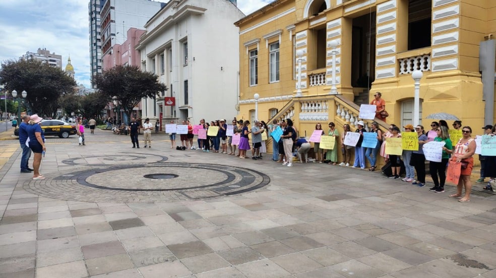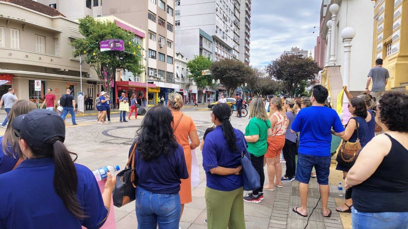 O Sindiserp-BG realizou uma manifestação nesta terça-feira (10), das 11h30 às 13h, em frente à Prefeitura de Bento Gonçalves. O ato cobrou reajuste no vale-alimentação e denunciou a desvalorização do funcionalismo. Servidores levaram cartazes, usaram som, fizeram discursos e tocaram músicas de protesto.