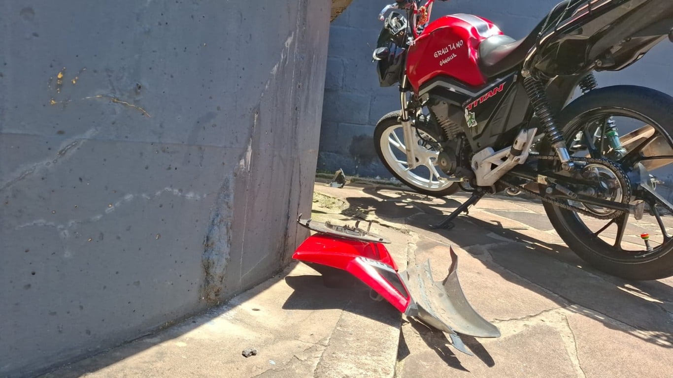 Um acidente de trânsito deixou um motociclista ferido no início da tarde tarde desta quinta-feira (18) no bairro Bela Vista, em Caxias do Sul. A colisão envolveu um carro Fiat/Doblo prata e uma motocicleta Honda/Titan 160 vermelha, em uma curva em frente a um mercado, na rua Conde D’Eu.