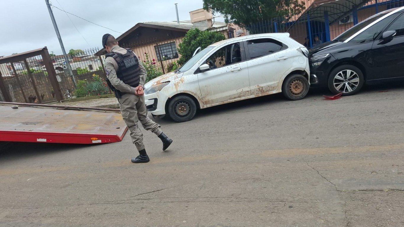 O motorista do Ka, que era o adolescente baleado, tentou dar ré para fugir, mas acabou colidindo em um Citroën/C4 Picasso estacionado em frente a uma residência.