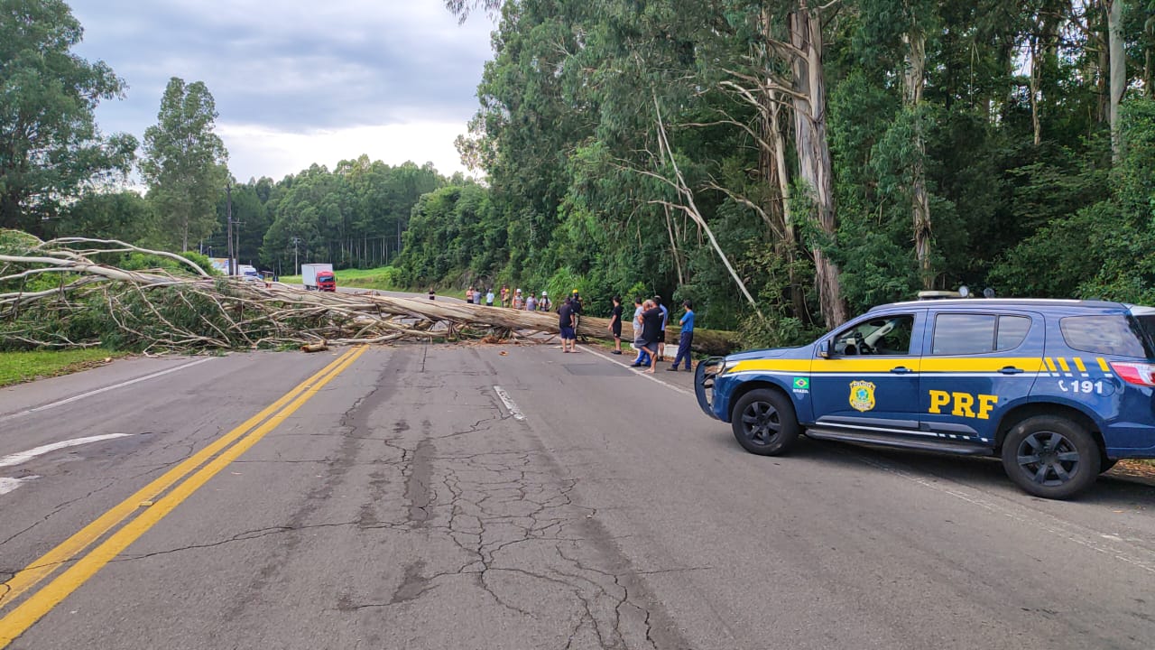 De acordo com a Polícia Rodoviária Federal (PRF), a árvore atingiu fios de eletricidade na queda, o que torna necessário o desligamento da energia antes do início do corte e da remoção.