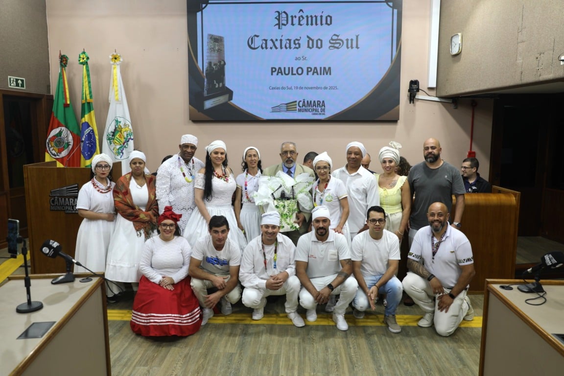 A proposta foi apresentada e conduzida pelo presidente da Casa, vereador Lucas Caregnato (PT). Durante a cerimônia, religiosos de matriz africana celebraram a atuação de Paim.