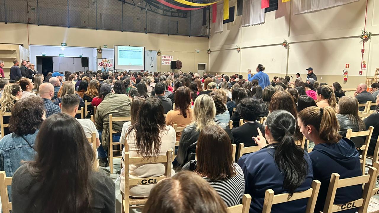 Mais de 300 servidores municipais reuniram-se no Centro Comunitário Luterano, em uma assembleia convocada pelo Sindicato dos Servidores Municipais de Farroupilha (SISMUF), na noite desta terça-feira (21). O encontro teve como pauta principal a análise do pacote de medidas proposto pelo governo municipal, que prevê alterações significativas na vida funcional dos trabalhadores públicos.
