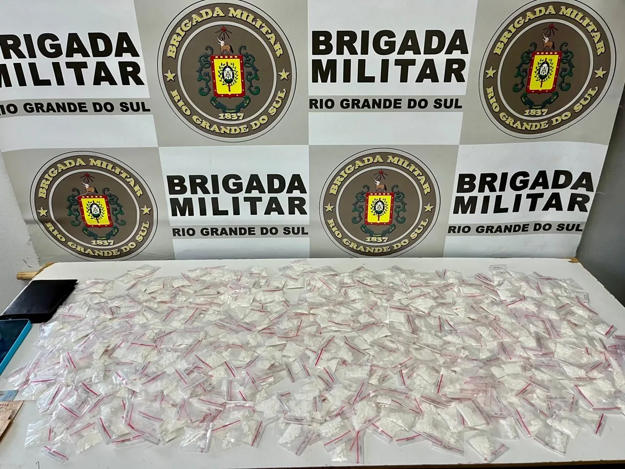 A primeira abordagem foi por volta das 17h, no bairro São Roque. Um homem de 41 anos foi preso após a polícia encontrar uma sacola com 560 papelotes de uma substância semelhante à cocaína, além de 20 malotes, um celular e R$ 152 em dinheiro dentro de um veículo Ford Focus prata.