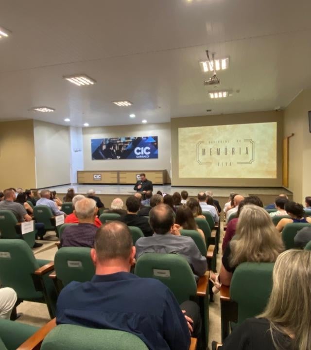 Uma noite marcada por emoção, memória e reconhecimento na Câmara da Indústria e Comércio (CIC) de Garibaldi, durante o lançamento do Projeto Memória Viva 2025. Com o auditório completamente lotado na quinta (27), a comunidade acompanhou a apresentação dos quatro documentários produzidos neste ano, celebrando trajetórias que ajudaram a escrever a história do município.
