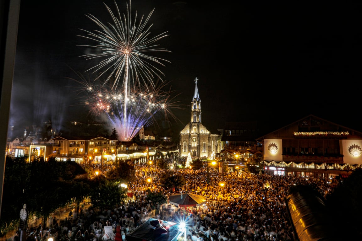 O ponto alto da noite foi o show pirotécnico, com duração de cerca de oito minutos, que iluminou o céu e marcou a virada do ano. O espetáculo teve como cenário a Igreja Matriz São Pedro e emocionou tanto moradores quanto turistas que escolheram Gramado como destino para o Réveillon.