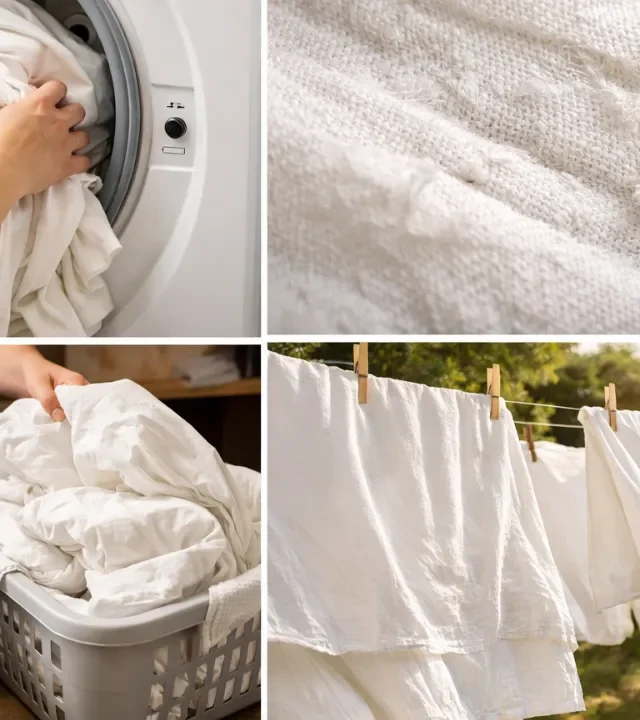 A temperatura elevada também representa um risco silencioso ao lavar roupas de cama. Embora a água quente ajude na remoção de ácaros, seu uso constante enfraquece fibras naturais e altera a textura original.