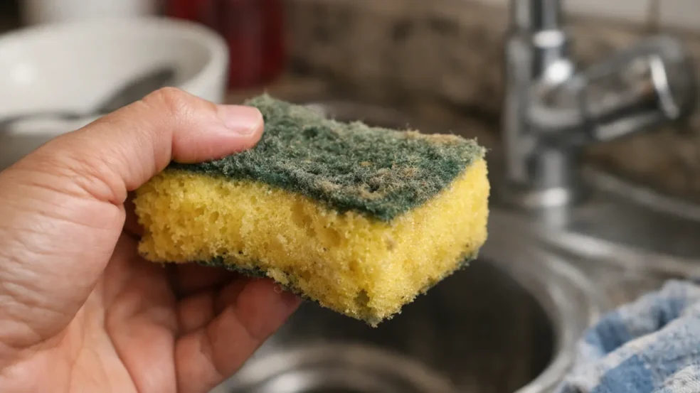 Outro hábito comum é manter a esponja até que ela esteja visivelmente desgastada, esfarelando ou com odor forte. Muitos só trocam a esponja quando ela “não presta mais”, ignorando que, bem antes disso, ela já se tornou um vetor invisível de contaminação.