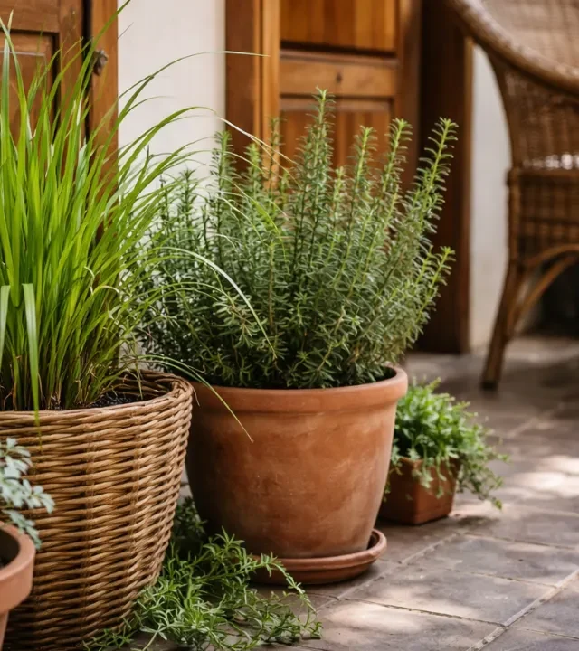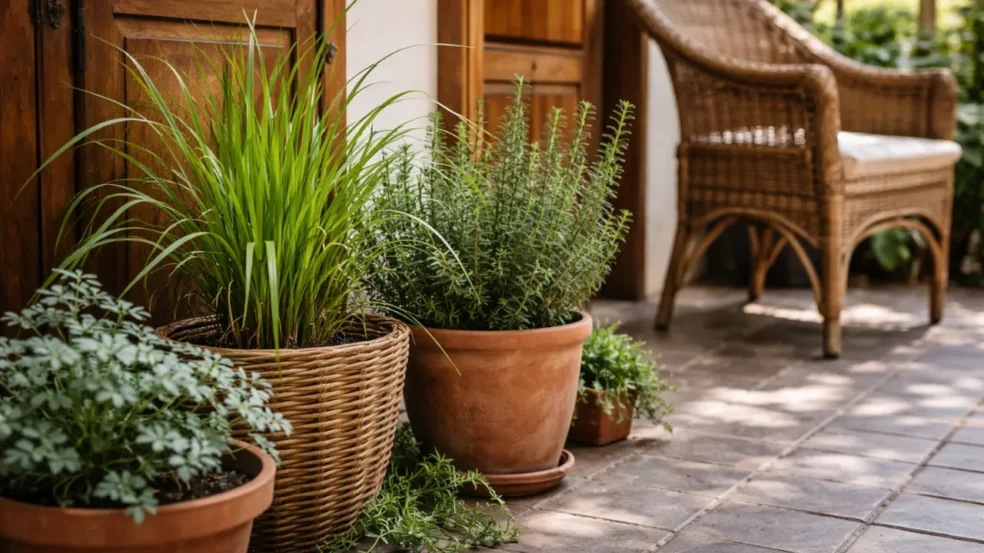 Uma das campeãs nesse quesito é a citronela. Além de espantar pernilongos, sua presença constante afasta também cupins subterrâneos. Outro exemplo prático é o alecrim, que além de perfumar o ambiente, libera um tipo de resina que os insetos evitam instintivamente. Em geral, essas plantas devem ser cultivadas próximas a portas, batentes e móveis de madeira natural.