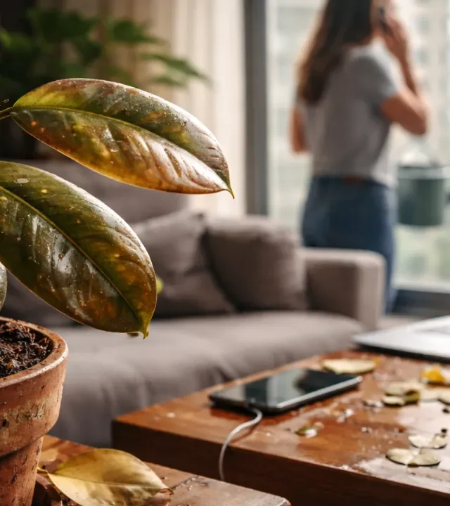 Era só mais uma manhã comum quando os primeiros sinais surgiram no ficus borracha encostado à janela da sala. As folhas da planta ainda brilhavam, mas algo parecia fora do lugar. O vaso estava pesado demais, o substrato escuro demais, e o silêncio da planta parecia carregado de um aviso discreto.