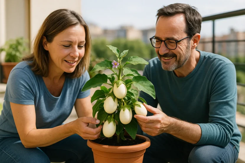 Se o objetivo é ter uma planta-ovo cheia de frutos, o segredo está na adubação equilibrada e na poda leve. A cada duas semanas, use um adubo rico em potássio e fósforo para estimular a floração e o surgimento dos frutos brancos. Retirar folhas secas e galhos fracos ajuda a redirecionar a energia da planta, fazendo com que ela se concentre na produção. Outro truque é girar o vaso de tempos em tempos para que todos os lados recebam luz igualmente — isso evita que o caule cresça torto em direção ao sol.