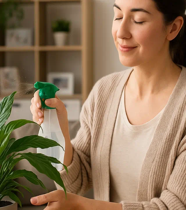 Pulverizar água sobre as folhas ajuda a simular o ambiente tropical que o lírio-da-paz adora. Essa prática aumenta a umidade relativa do ar, muito útil principalmente no inverno, quando os ambientes ficam mais secos por causa de aquecedores ou ar-condicionado.