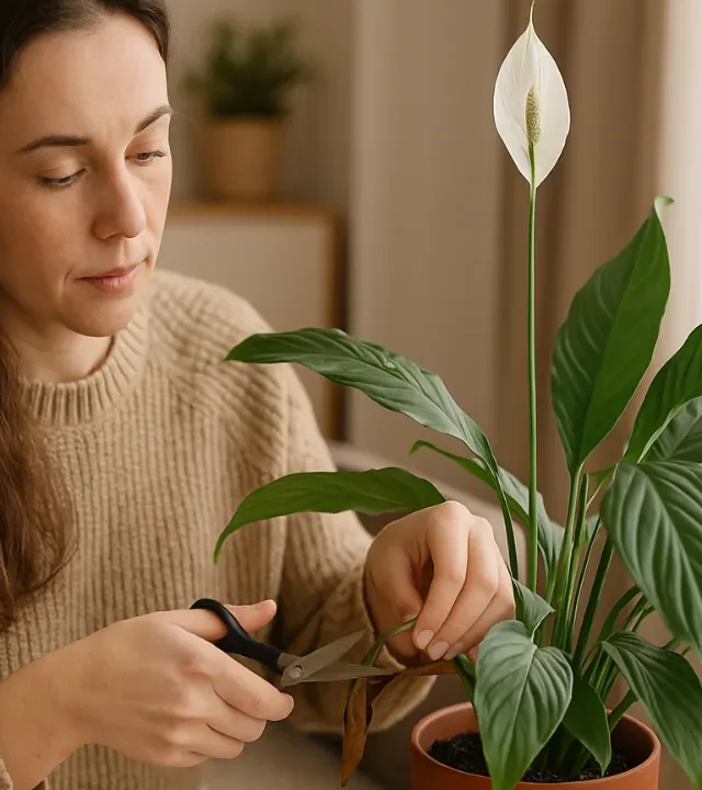 Muitos jardineiros, por ansiedade, cometem um erro fatal: podam o lírio-da-paz logo que percebem folhas amareladas, sem esperar o fim do ciclo. Essa antecipação corta o fluxo natural de energia e faz a planta “entender” que é hora de economizar recursos — em vez de florescer.