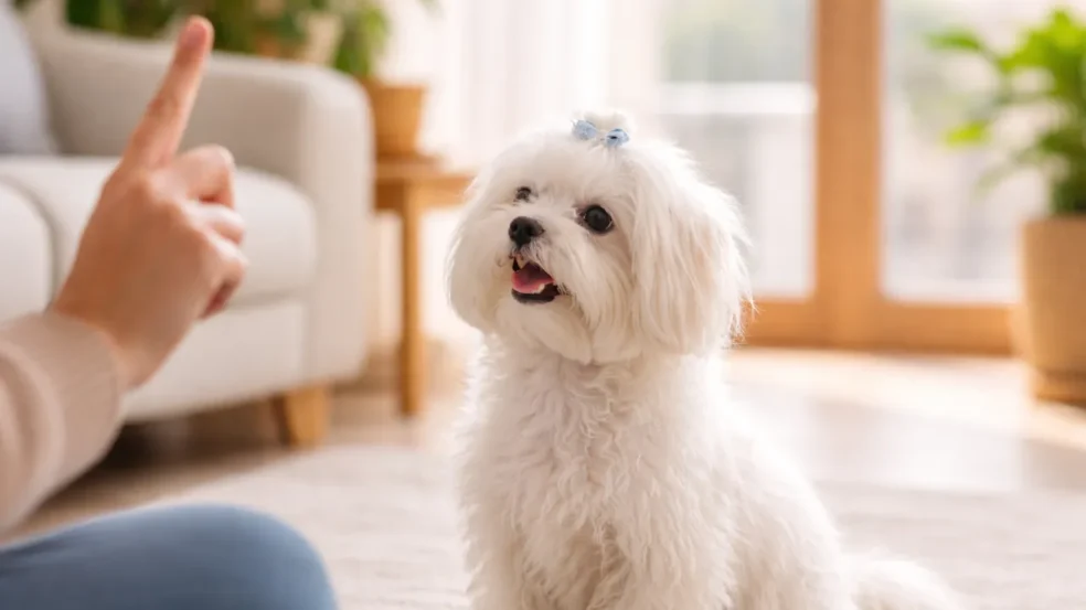 Melhorar a obediência do Maltês não passa por dureza, mas por previsibilidade. O cão precisa entender o que funciona sempre. Isso começa com comandos simples, usados em momentos reais do dia, não só em treinos formais.