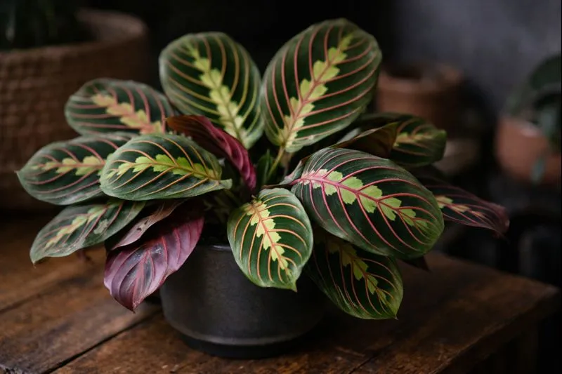 O que muitas pessoas não percebem é que a maranta gosta de sombra. Ela é uma das poucas plantas ornamentais que se destacam em locais de meia sombra ou mesmo sombra total com luz indireta. Quando colocada nesses ambientes, sua coloração tende a se intensificar, exibindo tons de verde profundo, roxo ou até detalhes em rosa — dependendo da variedade cultivada.