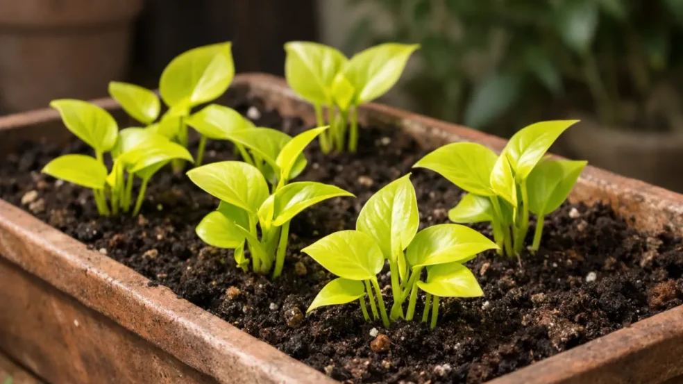 Não basta apenas jogar as mudas no vaso e esperar milagres. Para a jiboia neon atingir o formato de cascata, o ideal é seguir um padrão de plantio circular, posicionando cada muda com leve inclinação para fora, como se estivessem formando a borda de um ninho. Isso estimula o crescimento lateral e descendente desde o início.