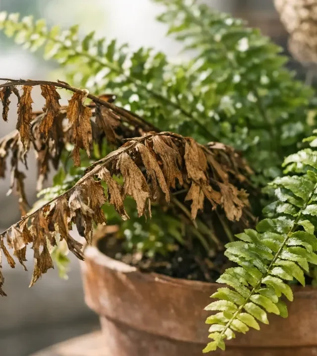 Em cidades do interior, onde o calor é forte e o costume de deixar portas e janelas abertas para ventilar a casa é enraizado, é comum posicionar a samambaia-havaiana próximo a correntes de ar para “refrescar” a planta. Só que o efeito é exatamente o oposto: a planta perde umidade pelas folhas, entra em estresse hídrico e começa a apresentar sinais de desgaste.