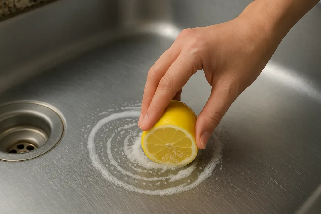 Quando os dois são usados juntos, o sal potencializa o efeito do limão, criando uma espécie de pasta de limpeza natural. Essa mistura penetra nas ranhuras do material e quebra partículas de gordura e sujeira, além de neutralizar odores — um bônus para quem lida com pias com cheiro forte de alimentos ou de ralo entupido.