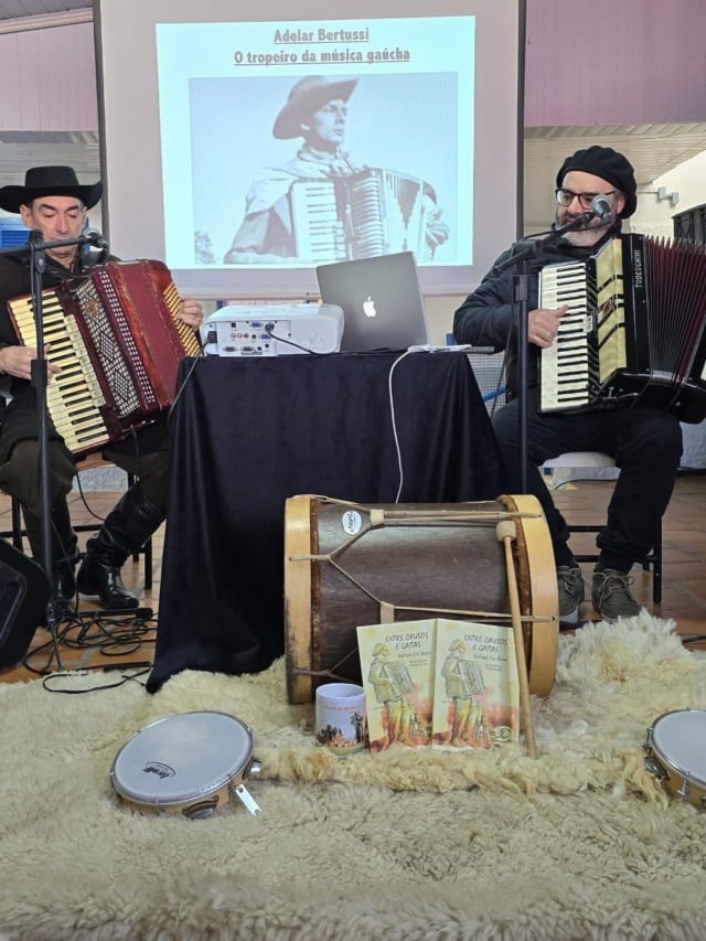 O projeto “Nossa Música Entre Causos e Gaitas” já chegou a mais de cinco mil estudantes de Caxias do Sul. Além das escolas, também foi apresentado em instituições como a APAE e APADEV. A proposta é aproximar informações históricas e iniciação musical de forma dinâmica e simples, de modo a despertar nos estudantes o interesse pela cultura musical da Serra Gaúcha. No ano passado a proposta também foi apresentada em Lajeado e Estrela, cidades atingidas pelas enchentes de 2024 e, para este ano, deverá ter nova circulação por municípios que também sofreram o mesmo problema, desta vez com recursos da Lei Rouanet.