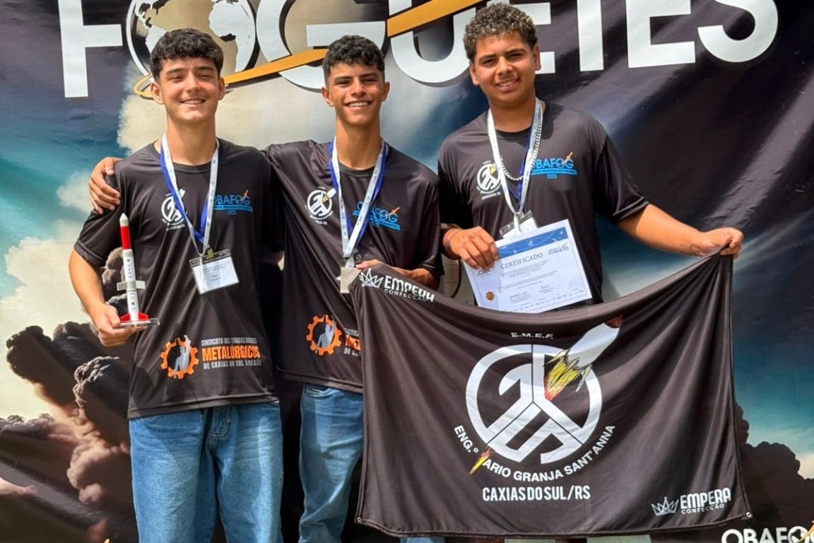 Três estudantes da Escola Municipal de Ensino Fundamental (EMEF) Dario Granja Sant’Anna, de Caxias do Sul, conquistaram o segundo lugar na Jornada Brasileira de Foguetes, competição nacional realizada entre os dias 2 e 5 de fevereiro, em Barra do Piraí (RJ).