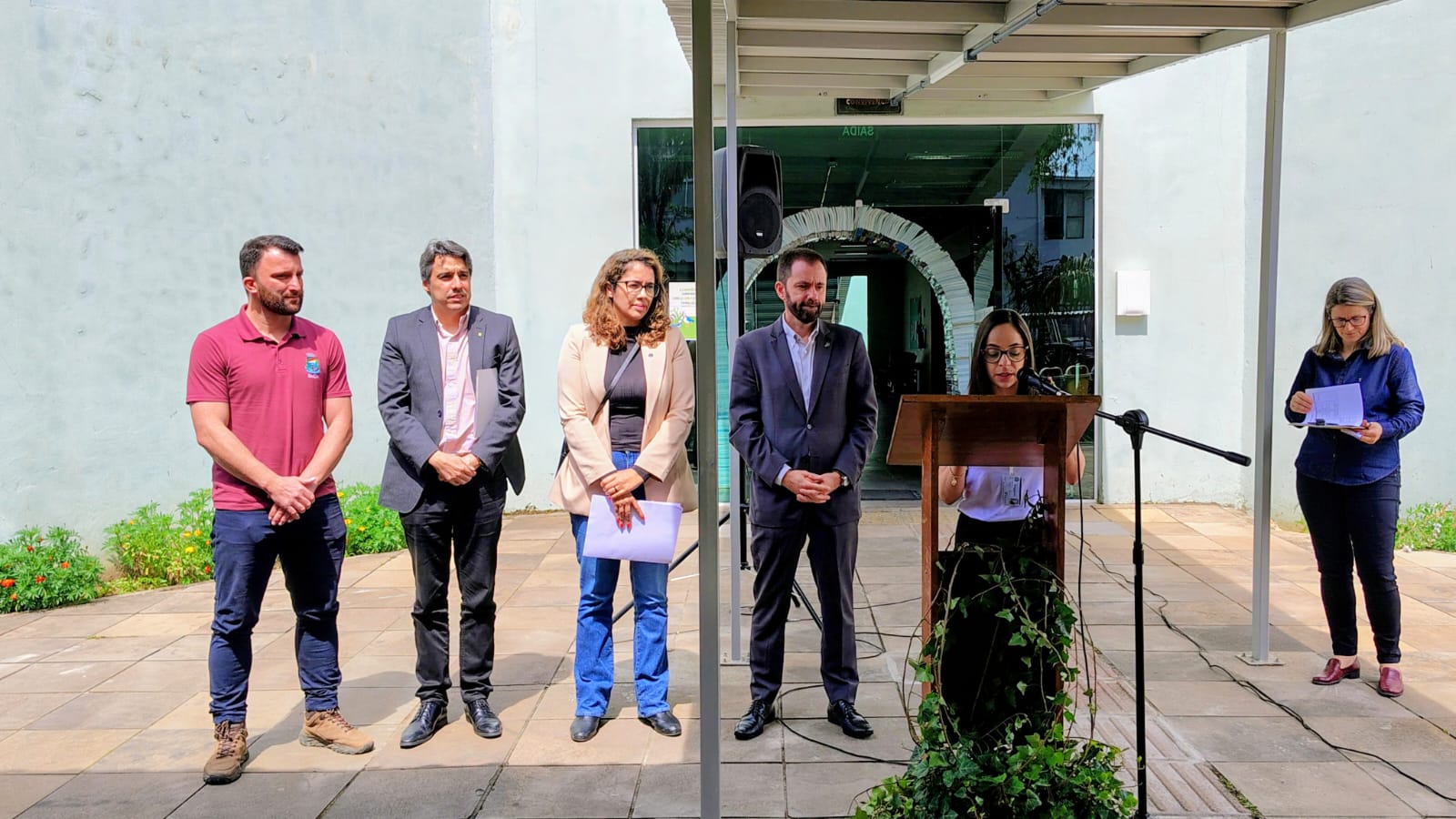 A cerimônia contou com a presença do reitor do IFRS, professor Júlio Xandro Heck, do diretor-geral do campus, professor Rodrigo Otávio Câmara Monteiro, do secretário municipal de Agricultura, Luis Carlos de Mari, representando a Prefeitura, e do vereador Duda Pompermayer, representando a Câmara Municipal.