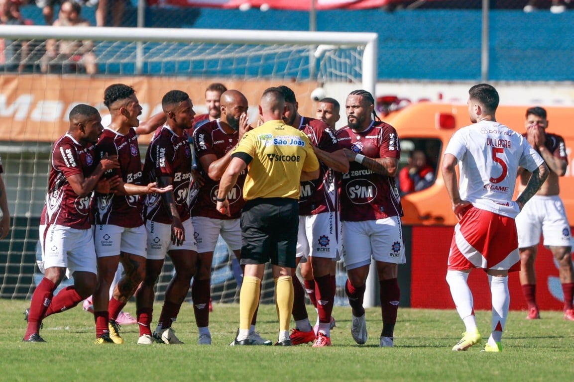 O cenário da partida, que tinha um ritmo acelerado, mudou a partir dos 17 minutos, quando o zagueiro Maurício Ribeiro foi expulso por pisar nas costas de Tabata, quando o meia estava caído no gramado.