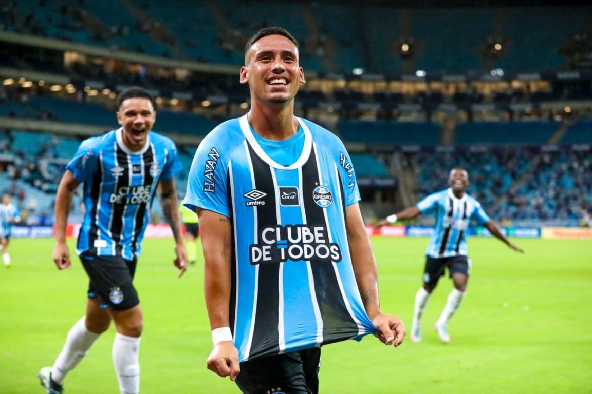 Aos 44, Carlos Vinicius chegou a fazer mais um para o Grêmio, acertando um chute no canto direito de Everson, mas o artilheiro tricolor estava em posição irregular.