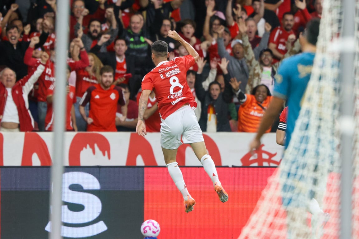 Aos 18 minutos, Bernabei foi o protagonista da primeira grande oportunidade do Inter. O lateral finalizou cruzado e acertou a trave esquerda do goleiro Gabriel. Melhor na partida, o colorado seguiu pressionando e chegou ao gol aos 23 minutos. Pela ponta direita, Vitinho fez cruzamento e Borré apareceu no centro da pequena área, com muita liberdade, para empurrar a bola para a rede. 1 a 0.