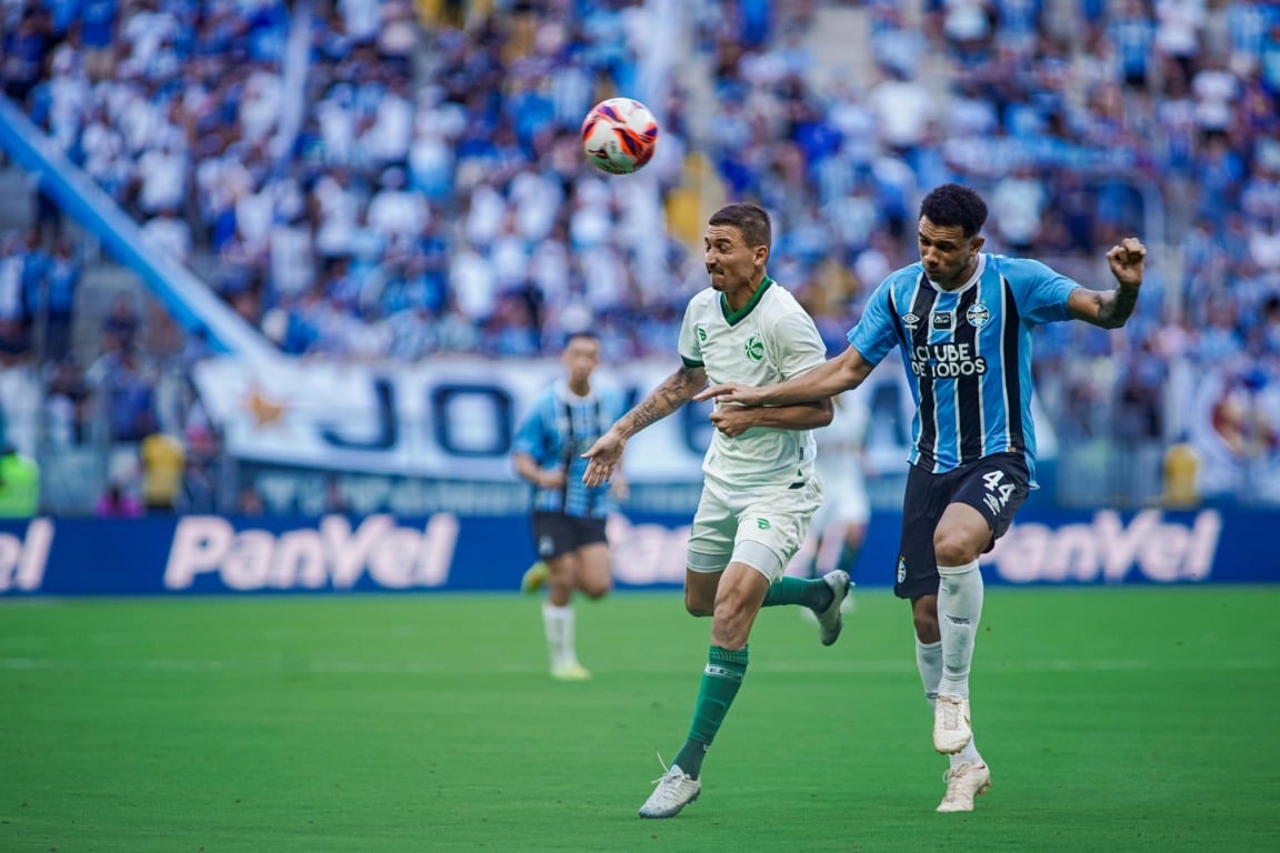 Outra boa chegada ao ataque foi acontecer um longo tempo depois, somente aos 35 minutos. Pela esquerda, o Grêmio avançou com Roger, que cruzou na área para André Henrique. O centroavante se esticou e desviou de carrinho, mas Jandrei defendeu.