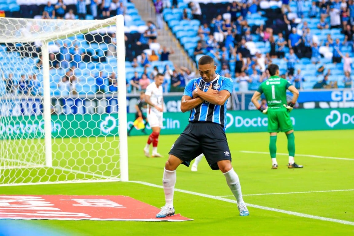 Aos 9, o estreante Tetê apareceu pela primeira vez e quase marcou seu primeiro gol com a camisa tricolor. Dentro da área, o atacante finalizou colocado e acertou o travessão. O Grêmio seguiu com o domínio total do jogo e conseguiu ampliar aos 15 minutos. Pela direita, Cristaldo tabelou com Tetê e cruzou rasteiro para Carlos Vinícius empurrar para a rede, livre de marcação. 2 a 0.