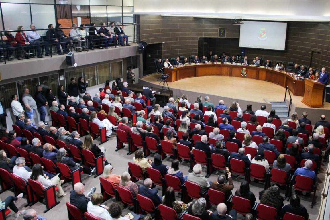 A Câmara de Vereadores de Farroupilha ficou lotada na noite desta segunda-feira (27) para celebrar a trajetória de João Fernando Silvestrin – empresário, líder comunitário e figura marcante no município. Amigos, familiares e colegas se reuniram para prestigiar a entrega do Título de Cidadão Emérito de Farroupilha, honraria concedida a farroupilhenses natos com atuação relevante na comunidade.
