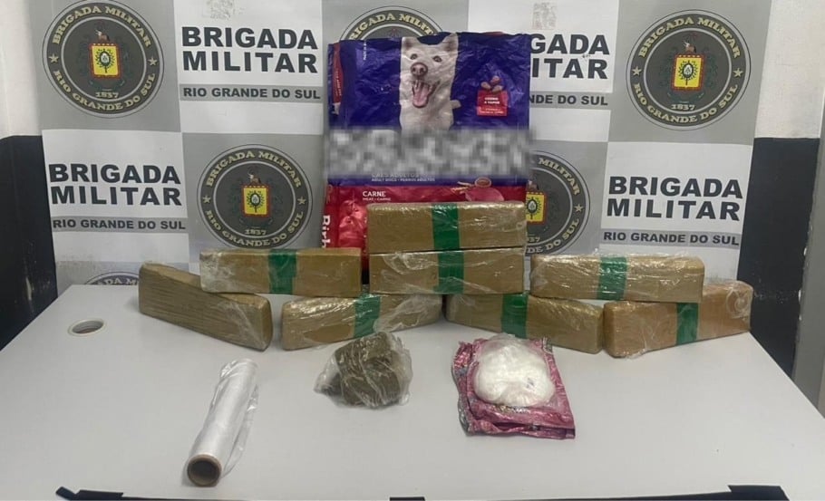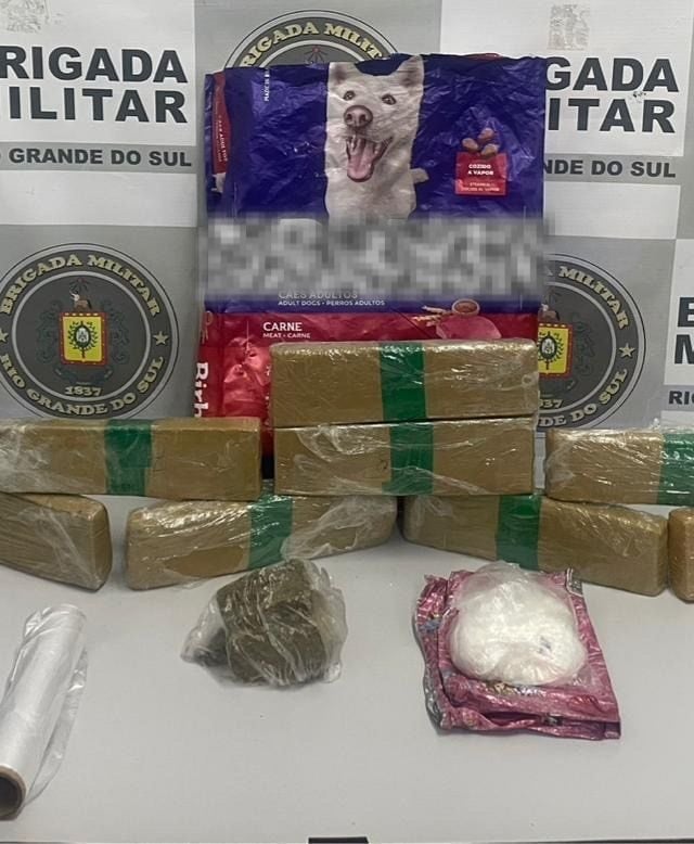 Com os indivíduos, os policiais encontraram aproximadamente 9kg de drogas, incluindo tijolos de maconha, porções de cocaína e outras substâncias.