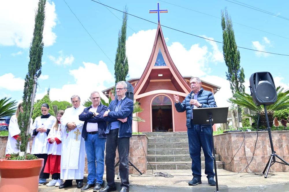 Também se manifestaram o representante da comunidade Lucas Leite, o coordenador de Relações Comunitárias Eloi Frizzo (neto de Firmínio Frizzo) e o secretário de Obras Lucas Suzin. A comunidade entregou um presente simbólico às autoridades. A cerimônia foi encerrada com bênção conduzida pelo padre Agostinho Deinani.