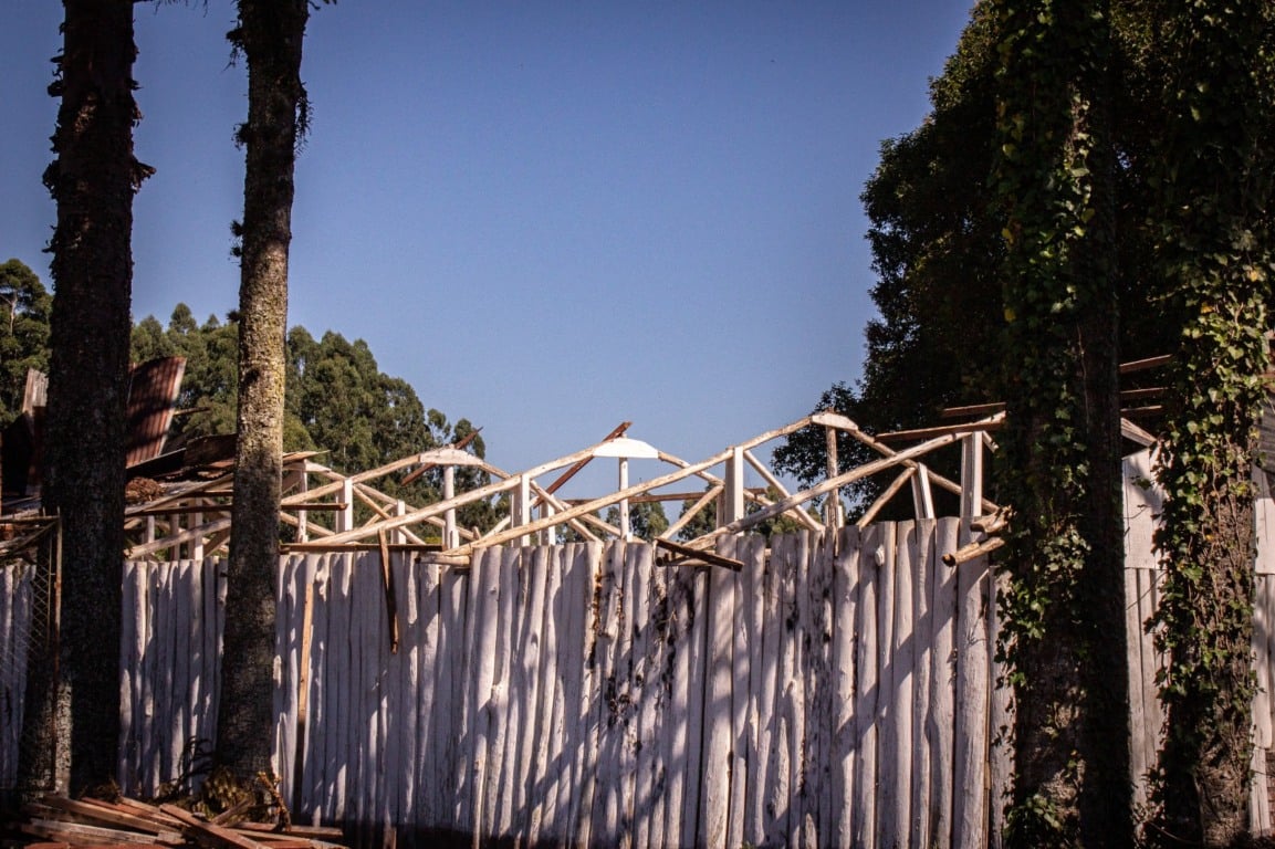 - Nas Residências: As fotos das propriedades atingidas revelam telhados arrancados, telhas espalhadas pelo chão e estruturas laterais comprometidas. Em algumas, apenas lonas azuis cobrem os vãos, uma solução provisória contra as intempéries.