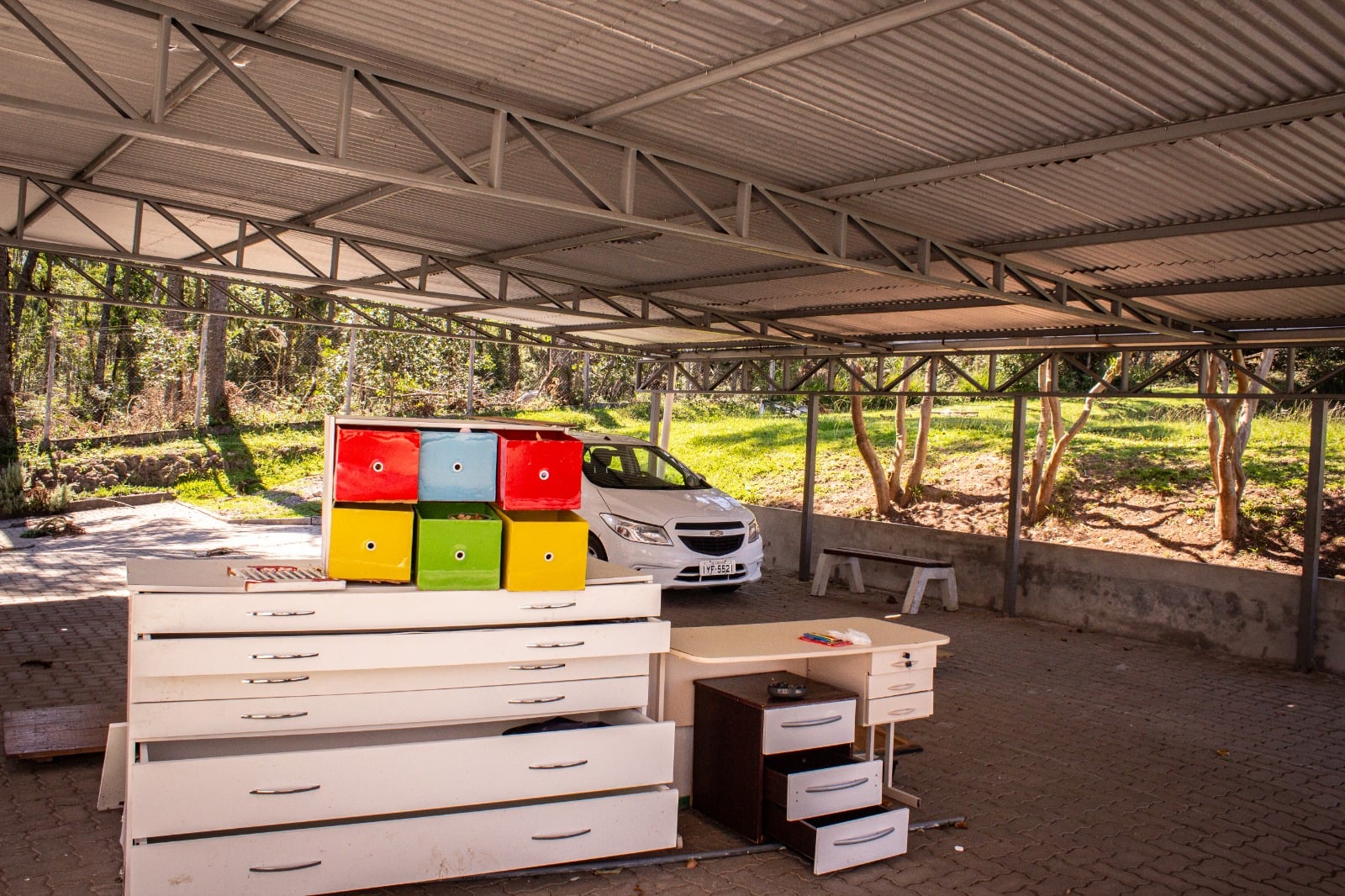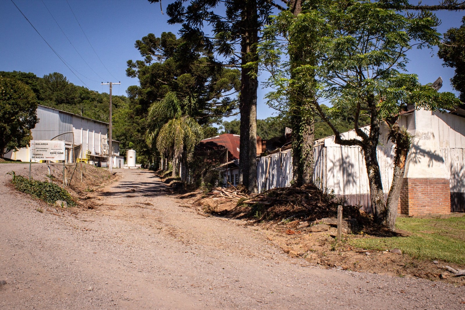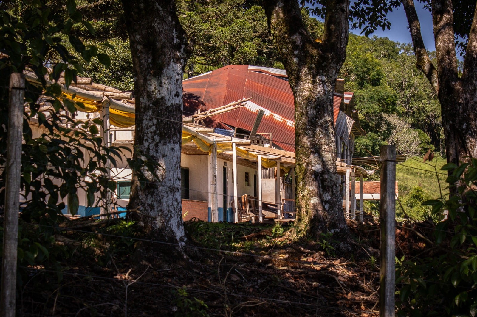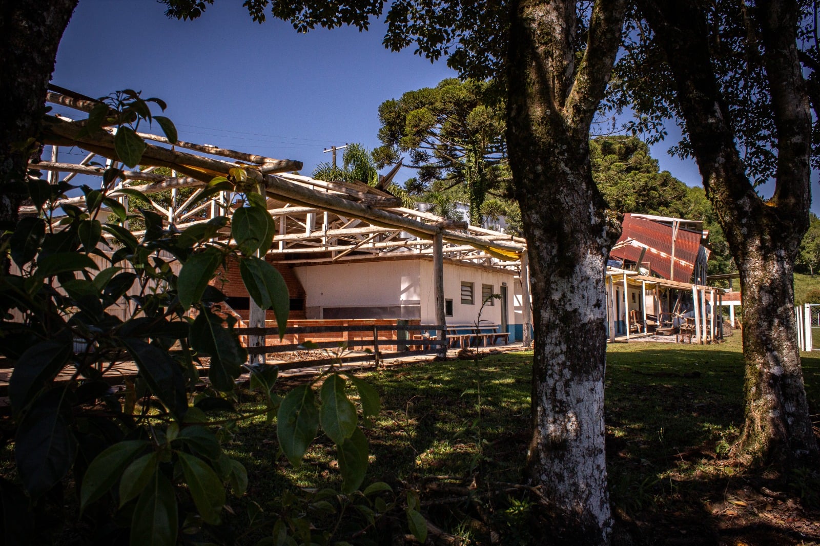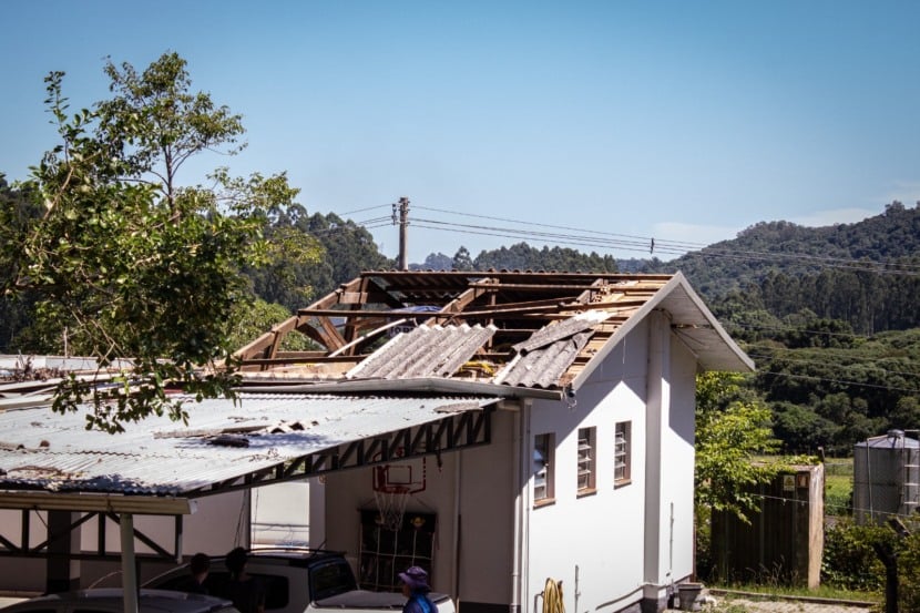 - Na Escola José Chesini: A escola foi destelhada quase que por completo, com danos internos significativos. As obras de reconstrução ainda não avançaram visivelmente, evidenciando a complexidade do serviço.