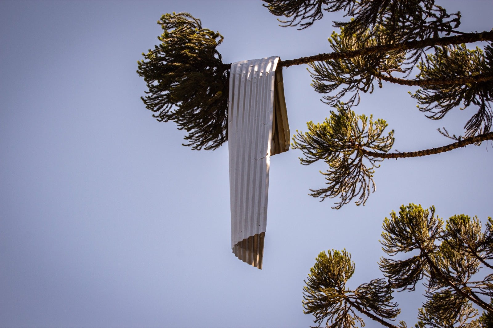 - Nas Residências: As fotos das propriedades atingidas revelam telhados arrancados, telhas espalhadas pelo chão e estruturas laterais comprometidas. Em algumas, apenas lonas azuis cobrem os vãos, uma solução provisória contra as intempéries.