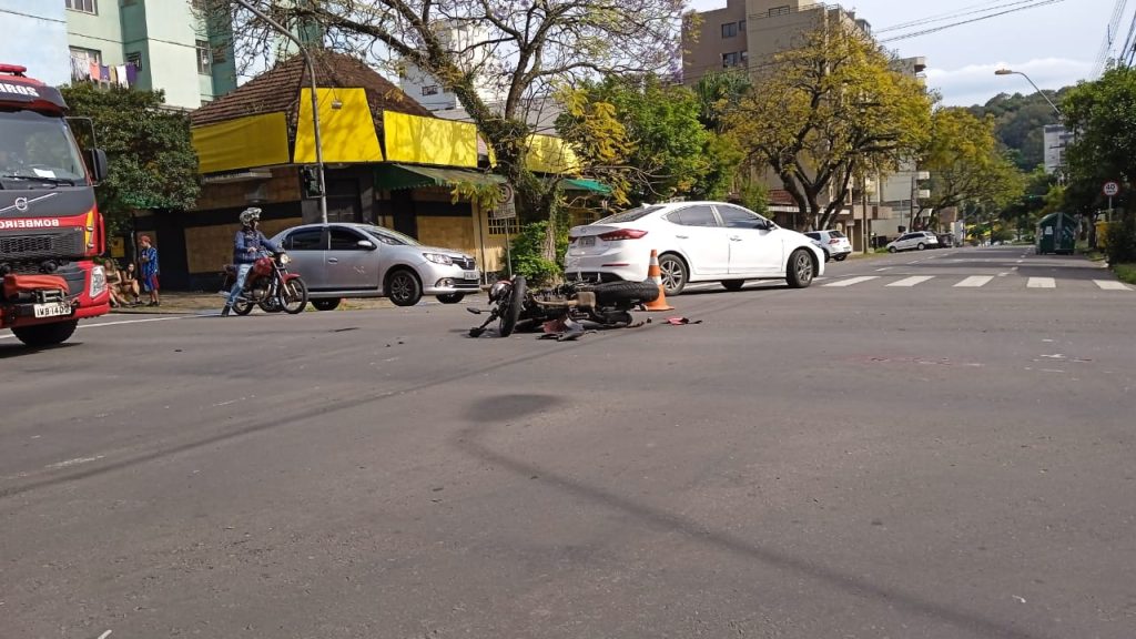 Conforme informações da repassadas pela Brigada Militar (BM), a colisão envolveu uma moto Honda/Fazer e um Chevrolet/Onix. O condutor da motocicleta teve traumatismo craniano e foi socorrido ao Hospital Pompéia por uma equipe do Serviço de Atendimento Móvel de Urgência (SAMU).