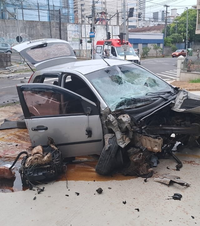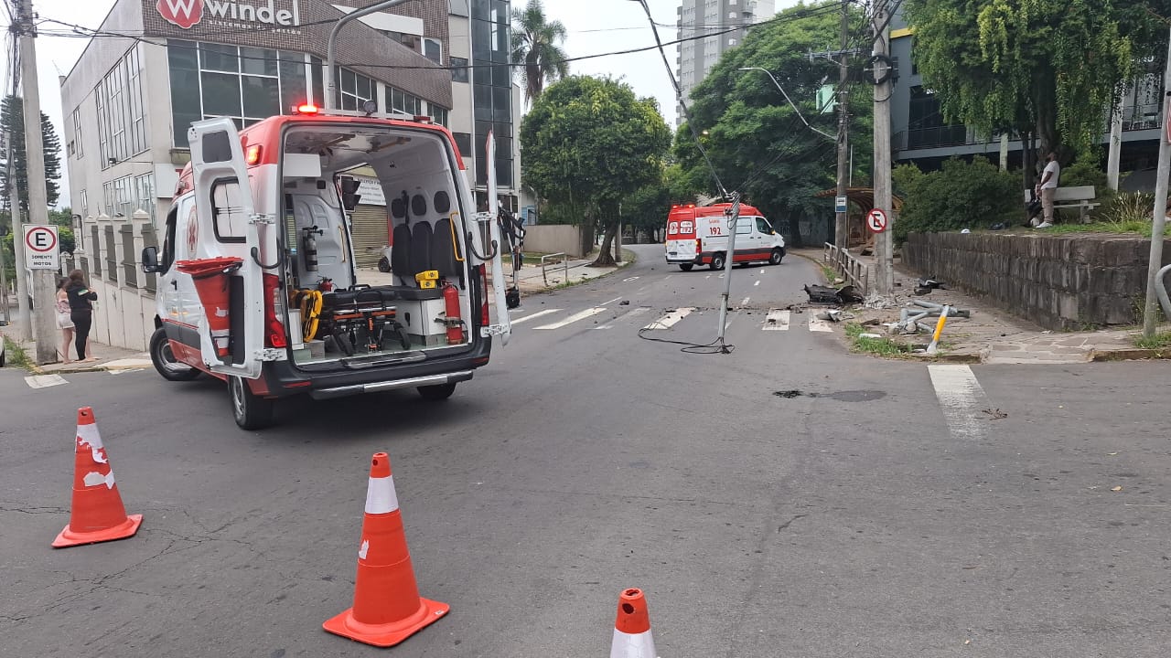 Conforme as informações apuradas no local, o condutor descia pela Visconde de Pelotas quando perdeu o controle do veículo e colidiu contra um poste.
