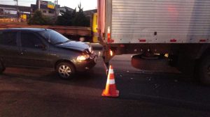 Um acidente de trânsito foi atendido pelo Pelotão Rodoviário da Brigada Militar de Farroupilha, na manhã desta quinta-feira (11), no km 119 da RSC-453, no local conhecido como trevo do Santa Rita. A colisão ocorreu por volta das 6h30min e envolveu um Palio, um Gol e um caminhão. A passageira do Gol, de 52 anos, ficou ferida e foi encaminhada pelo SAMU ao Hospital São Carlos.