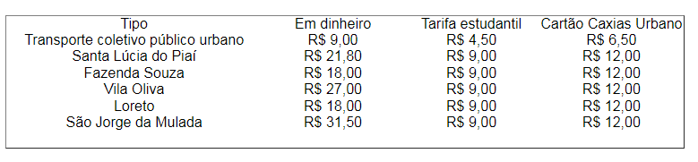 Outro subsídio, no valor de R$ 4,17 milhões, foi aprovado para ampliar o acesso ao transporte coletivo a pessoas em situação de vulnerabilidade social, fortalecer o sistema porta a porta e atender moradores dos distritos de Fazenda Souza, Loreto, Santa Lúcia do Piaí, São Jorge da Mulada e Vila Oliva. Nesses locais, os usuários que utilizarem o cartão Caxias Urbano Pessoa Física pagarão R$ 12,00 por trecho. Já o pagamento em dinheiro terá valores variáveis, conforme a distância percorrida.